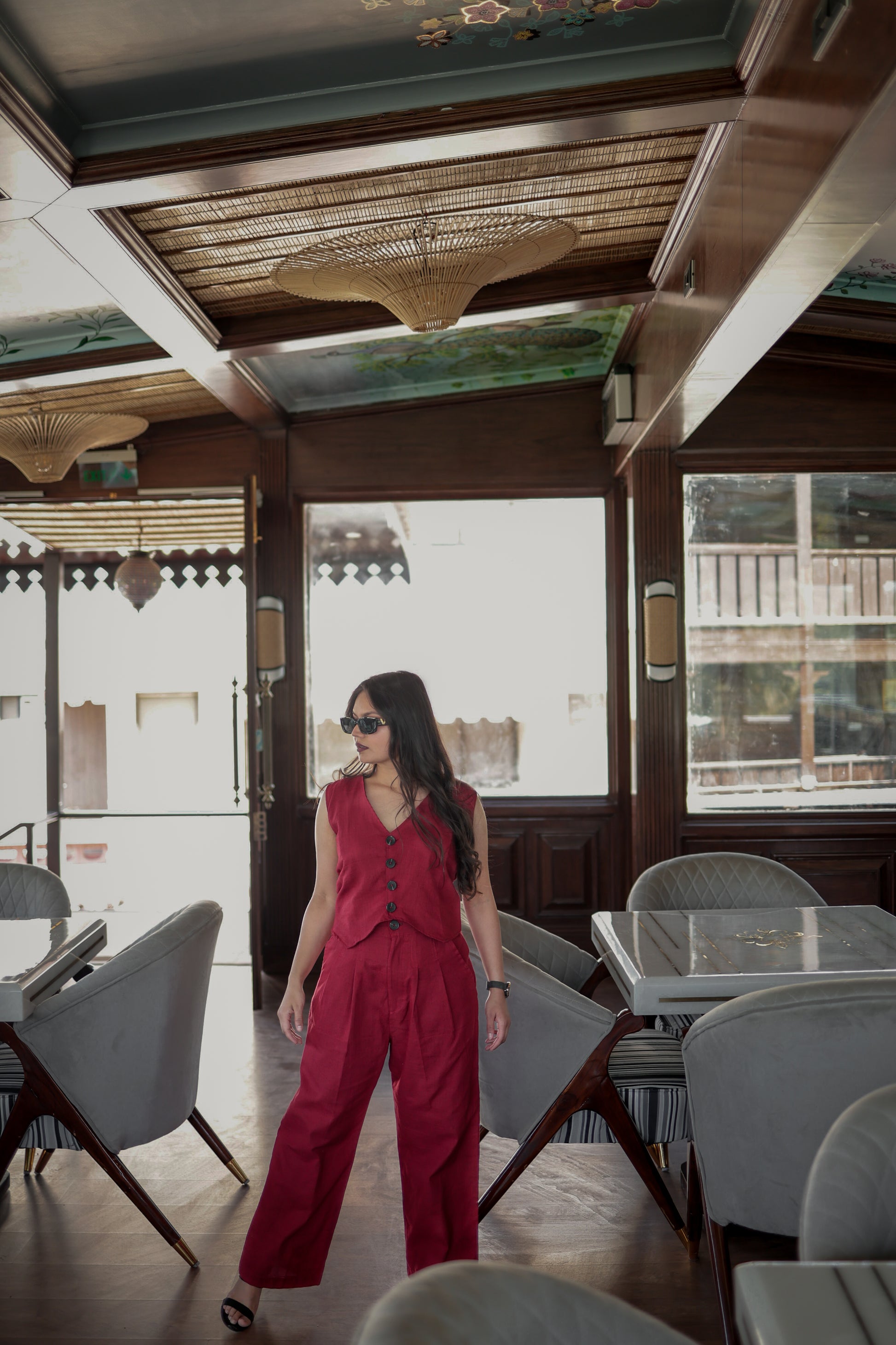 Power meets polish in The Scarlet Set — a smart-casual co-ord featuring a tailored vest top and matching pants in a striking scarlet red. The structured vest adds a sharp, contemporary edge, while the sleek trousers balance comfort with sophistication. Whether styled for a brunch date or a bold work look, this set turns heads with confidence and effortless charm.